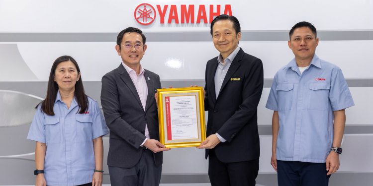 นายพงศธร เอื้อมงคลชัย ประธานกรรมการบริหาร นางสาวบัวทิพย์ จันทร์ดำรงกุล ผู้จัดการใหญ่ด้านการเงิน วางแผน พร้อมด้วยคณะผู้บริหาร บริษัท ไทยยามาฮ่ามอเตอร์ จำกัด ถ่ายภาพร่วมกับ นายศราวุธ ศุภรัตนชาติพันธ์ ผู้จัดการฝ่ายการให้การรับรอง บริษัท บูโร เวอริทัส ประเทศไทย จำกัด ในการรับมอบประกาศนียบัตรรับรองระบบมาตรฐาน ISO 14064-1 : 2018 Greenhouse Gases การันตี ไทยยามาฮ่ามอเตอร์ ว่าเป็นองค์กรที่มีการจัดการ การปล่อยก๊าซเรือนกระจกอย่างเป็นระบบ และมีประสิทธิภาพเป็นไปตามหลักมาตรฐานสากล ตอกย้ำการดำเนินธุรกิจอย่างยั่งยืน มุ่งสู่เป้าหมายความเป็นกลางทางคาร์บอนใน Scope 1 – 2 ในปี พ.ศ. 2578 และ Scope 3 ในปี พ.ศ. 2593 ถือเป็นบริษัทเบิกร่องเจ้าแรกของอุตสาหกรรมยานยนต์สองล้อในประเทศไทยที่ได้รับการรับรองมาตรฐานนี้