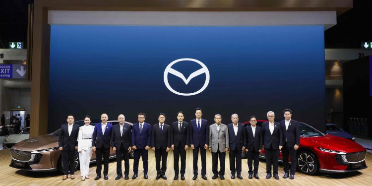 มร. โทรุ นากาจิม่า Managing Executive Officer, มร. ฮิโรชิ ชิบะ General Manager of Asean Office มาสด้า มอเตอร์ คอร์ปอเรชั่น ประเทศญี่ปุ่น พร้อมด้วย นายธีร์ เพิ่มพงศ์พันธ์ ประธานกรรมการบริหารและซีอีโอ และ มร. ทาเคชิ ซาโตะ รองประธานกรรมการบริหารและประธานเจ้าหน้าที่สายงานการเงิน บริษัท มาสด้า เซลส์ (ประเทศไทย) จำกัด และได้รับเกียรติอย่างสูงจากคณะสื่อมวลชนกิตติมศักดิ์ให้เกียรติร่วมพิธีเปิดบูธแสดงรถยนต์ไฟฟ้ารุ่นใหม่จากมาสด้า ในงานมหกรรมยานยนต์ ครั้งที่ 42 อาคารชาเลนเจอร์ ฮอลล์ อิมแพค เมืองทองธานี