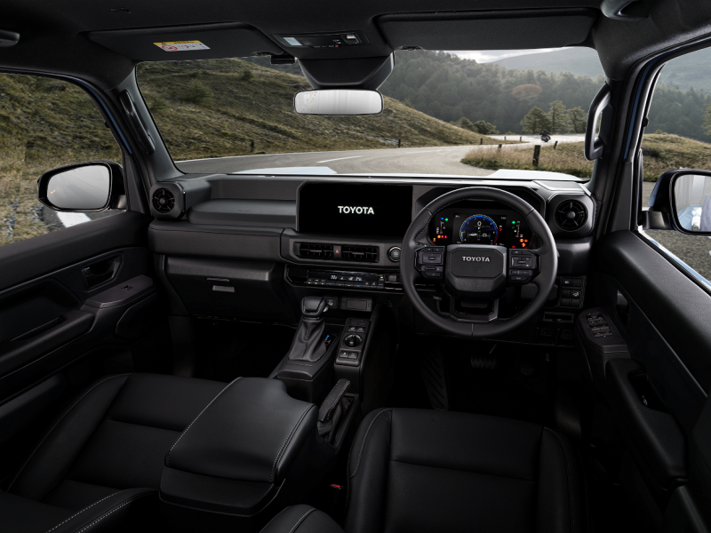 การออกแบบภายใน คงไว้ซึ่ง “เส้นสายแนวนอน” ตามแบบฉบับของ Land Cruiser เพื่อให้ผู้ขับขี่สามารถใช้งานและควบคุมฟังก์ชันต่าง ๆ ได้ง่ายอย่างเป็นธรรมชาติ พร้อมกันนี้ ด้วยแนวกระจกที่ต่ำลง และการออกแบบเสา A ให้ตั้งตรงมากขึ้น มอบทัศนวิสัยที่ดีเยี่ยมในทุกสภาพการขับขี่